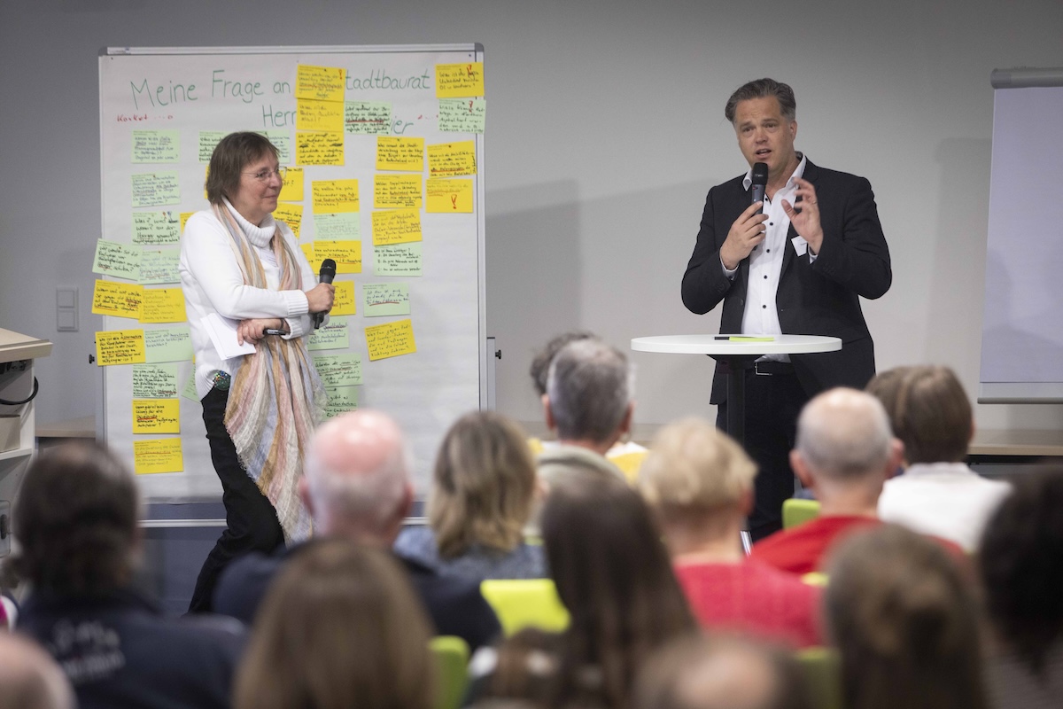 Der Abend begann mit einem Marktplatz, auf dem die Stadtverwaltung aktuelle Konzepte und Infrastrukturelemente vorstellte. Im Mittelpunkt standen unter anderem Fahrradstraßen, Piktogrammketten und Stadt-Umland-Verbindungen. Die Bürger konnten sich dort informieren und direkt mit den Fachleuten ins Gespräch kommen.